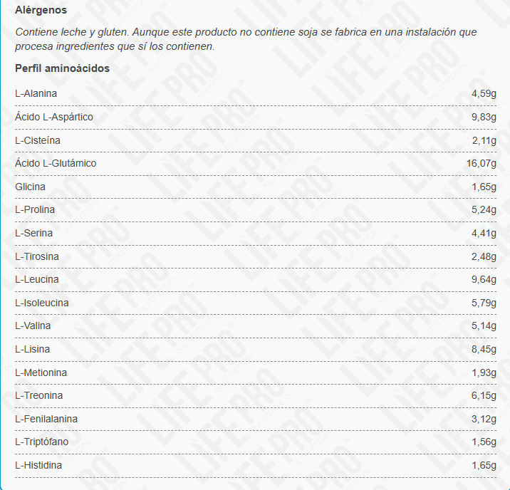 Esta fórmula patentada, es alta calidad y pureza, cuenta con un excelente perfil de aminoácidos y un bajo contenido en grasas e hidratos de carbono. Además, al proceder de la leche, se considera una fuente de proteína de alto valor biológico, ya que contiene todos los aminoácidos esenciales.
