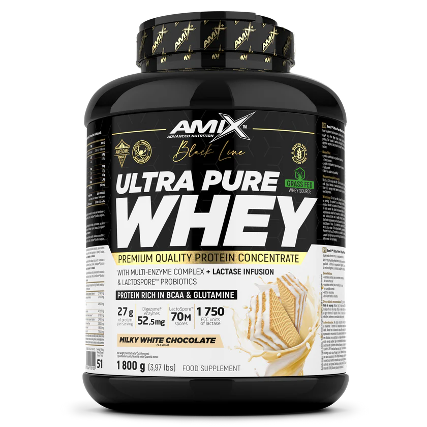 Ultra Pure Whey – Black Line es una proteína concentrada de suero de leche de alta calidad, diseñada para quienes buscan una fuente proteica eficaz, limpia y fácil de digerir. Con un excelente perfil de aminoácidos esenciales, incluyendo BCAA naturales, esta fórmula favorece la síntesis proteica, la recuperación muscular y el mantenimiento de la masa magra en todas las fases del entrenamiento.